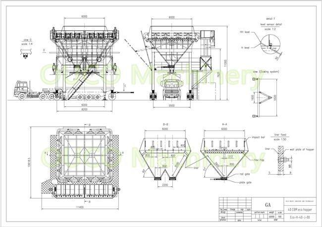 40 cube meter type mounted Eco-Hopper to receive wood pellets from vessel, which will be used for unloading at the Quay area via 13 m³ capacity Grabs and shall discharge to a container on truck. The Eco-Hopper installation under normal operating conditions will achieve a peak unloading rate of 400 ton/h and an average rate of 260 ton/h. This rate will be dictated by the grab cycle. It is calculated by the grab cycle by 2 minutes per cycle.